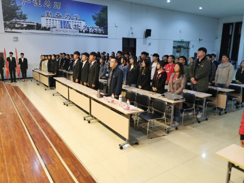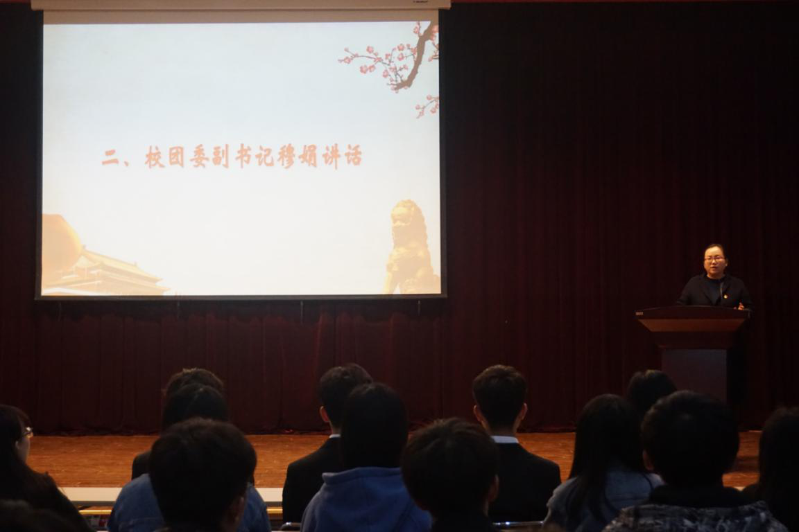 在全体人员齐唱国歌后,穆娟首先对我院“青年马克思主义者培养工程”骨干培训班开班表示祝贺,对我院连续四年坚持开展青马工作提出了表扬。第二,告诫在场团员要增强团员意识,时刻注意用共青团员的标准严格要求自己。第三,“党旗所指就是团旗所向”,作为团员,认真落实“三会两制一课”制度和活力团支部建设工程,是加强团员思想政治教育和自我教育,是提升基层团组织凝聚力和战斗力的重要保障。刘贵来为青马班授总旗和各班班旗后,青马班辅导员代表宣读了我院青马班纪律管理规定,青马新学员代表则告诉同学们,要将青马班学到的理论知识融入到日常的学习和工作当中,化为思想上的不竭动力。最后,刘贵来向同学们提出四点建议;一、把握契机、认真学习、提升素养,增强思想先进性。二、志存高远、坚定信心、牢记使命,增强理想先进性。三、主动学习、开拓创新、知行合一,增强行动先进性。四、深入贯彻学习学校第三次党代会精神,培养社会主义建设者和接班人,实现高水平财经大学的经贸梦。