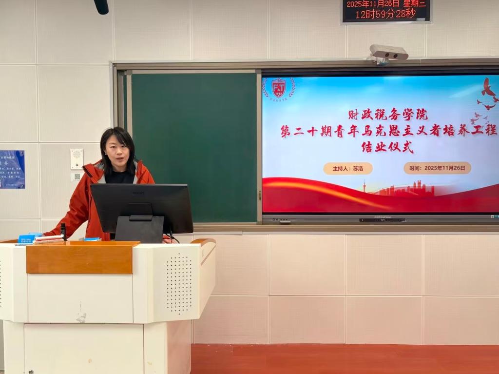 2025年11月26日,我院“第二十期青年马克思主义者培养工程”结业仪式在B102顺利举行。本次仪式我院团委书记安宁出席,主席团成员苏浩主讲,团委组织部负责人和全体青马班学员共同参加。