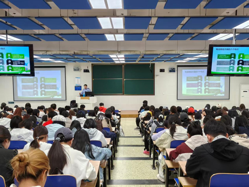 为提升学生反诈意识与防范能力,培育学生法治观念,10月14日,财政税务学院于第三教学楼C101教室举办“防范电信诈骗,守护财产安全”专题讲座。讲座特邀石家庄市公安局侦查中心副大队长张敬淼主讲,由财政税务学院党委副书记陈运涛主持,学院团委书记(学生工作办公室主任)安宁和本科生300余人参加。